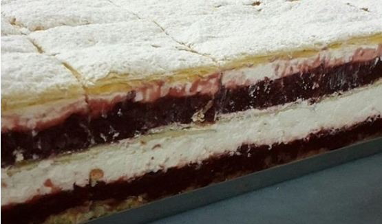3 kore lisnatog tijesta– 3 pudinga od vanilije– 1,5 l soka od višanja– 1 l slatkog vrhnja– 5 žlica šećera– 1 paket višanja